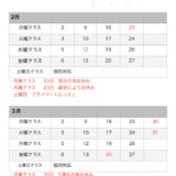 レッスンスケジュール2月・3月
